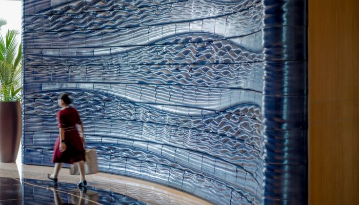 Plus de 900 carreaux imprimés en 3D décorent l’entrée d’un hôtel de luxe