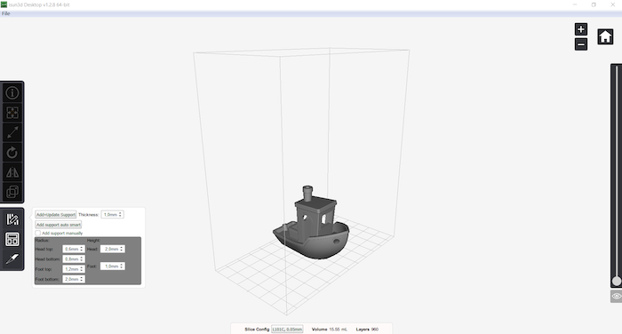 Neben den Funktionen zum Verschieben, Skalieren oder Drehen des 3D-Modells können Sie mit der Software eigene 3D-Druckmodelle managen, und auch mit der Option „Add support auto smart“ intelligent erstellen. Diese letzte Option ist jedoch noch nicht vollendet, wie uns das Team von A4 Technologie bestätigte. Ein zukünftiges Software-Update könnte dieses Problem möglicherweise beheben. Ihre beste Option für die Erstellung von Modellen wird immer sein, sich auf Ihre Erfahrung zu verlassen!