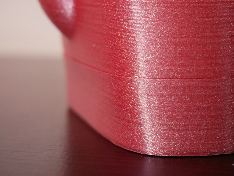 Weiter geht es mit unserem Lieblings-Testobjekt, das sich in den meisten unserer 3D-Drucker-Tests finden lässt. Auf den ersten Blick mögen wir mit diesem Eindruck recht zufrieden sein, aber die fleißigen Leser unter Ihnen werden bemerkt haben, dass es einen Mangel gibt: die Außenwand. Tatsächlich besteht das Objekt aus einer dünnen Wand, die von der Slicing-Software offensichtlich nicht berücksichtigt wurde. Ein Problem, das in der Vergangenheit bereits bei anderen Druckern beobachtet wurde.