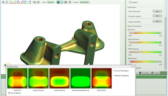 Mit der Simulationssoftware können Sie Ergebnisse eines 3D-Druckprozesses digital vorhersagen. Sie ermöglichen dem Anwender eine wertvolle Zeitersparnis, da sie mögliche Druckfehler in nur wenigen Minuten erkennen und so die Kosten, die durch hohe Druckabfälle entstehen, reduzieren. Der Benutzer kann eine Reihe von Parametern simulieren: Verformung, Temperatur oder Nachbearbeitung. Darüber hinaus kann der Bedarf an Druckmaterial ermittelt und kritische Bereiche identifiziert werden, in denen Verformungen auftreten können.