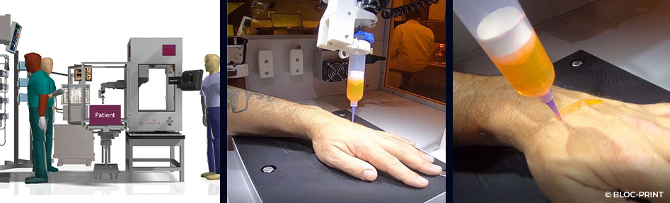 Das 2017 gestartete Forschungsprojekt BLOC-PRINT befasst sich mit dem Bioprinting von Haut und der Frage, wie die Technologie Menschen, welche schwere Verbrennungen erlitten haben, eine Behandlung ermöglichen kann. Dafür wurde eine Methode entwickelt, welche Haut aus patienteneigenen Zellen erzeugen soll. Das 36-monatige Projekt wurde für die nächsten 3 Jahre mit 4 Partnern verlängert: der Firma LabSkin Creations, dem ICMBS, dem LIRMM, den Hospices Civils de Lyon und der Plattform 3d.FAB. Dementsprechend handelt es sich um ein Projekt, welches zu 100 % von französischen Unternehmen durchgeführt wird und die Behandlung von tiefen Verbrennungen, für medizinische Notfälle grundlegend verändern könnte.