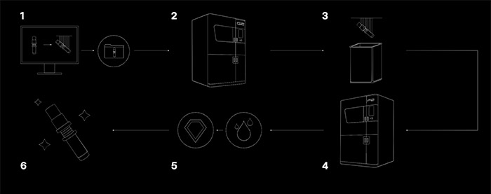 Das Shuttle (3) deckt die 3D gedruckten Teil ab und führt sie durch den gesamten Prozess. | alle Bildnachweise: Genera