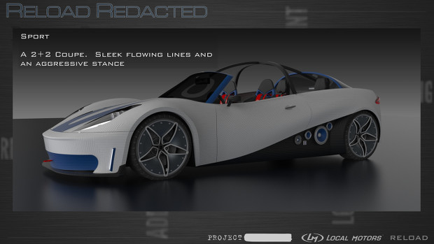 Um ihre Produktionsprozesse und Produkte zu verbessern, Werkzeugerfordernis zu verringern und eine schnellere Produktion zu ermöglichen, setzt der Automobilhersteller Local Motors auf das Direct Digital Manufacturing (DDM). In ihrem Wettbewerb ‚Project Redacted‘, haben sie nun einen Gewinner gekürt: Kevin Lo mit seinen Modellen Swim und Sport aus seinem Projekt namens Reload Redacted.