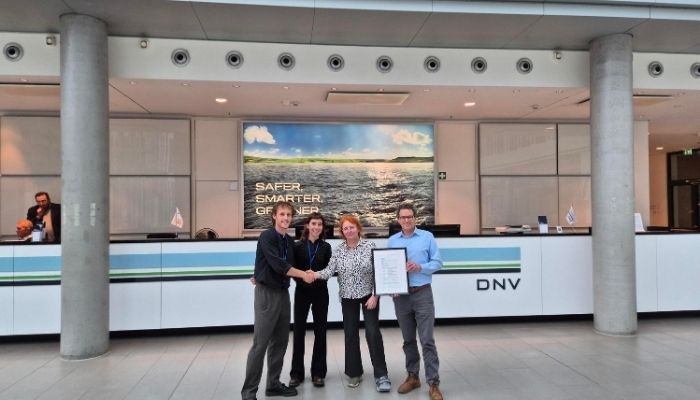 De gauche à droite : Harry Thompson – Technical Director chez DEEP Manufacturing; Sacha Hussey – Project Engineer chez DEEP Manufacturing; Dr Eva Junghans – Senior Principal Engineer, Lead of Practice Materials & Welding, Additive Manufacturing, DNV Maritime; et Thorsten Lohmann – Head of Materials & Welding chez DNV Maritime