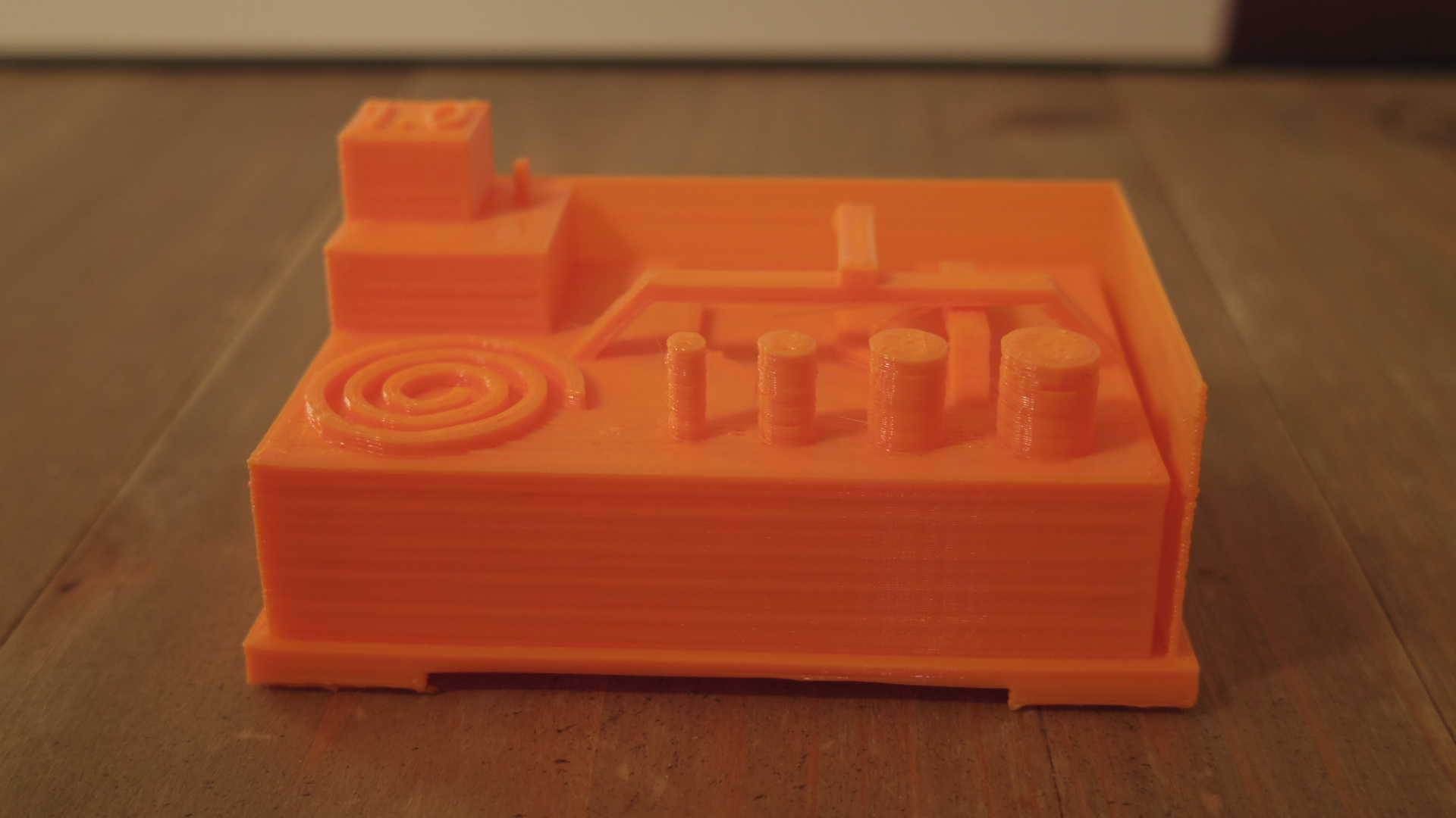 25 Minutes later and our first model had been printed successfully. There were no worries about plastic adhesion, as the detachment of the object was done easily as well!