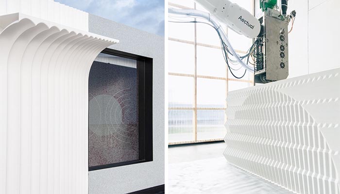 Aectual is specialised in offering 3D printed architectural elements, produced instantly on-demand. The idea for the building was to focus on geometries that could be reproduced with ease. Using Aectual’s platform, with which virtually any design can be digitally customised and 3D printed easily, the entire project was facilitated.