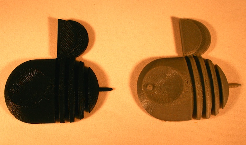 On the left, you’ll see our print with the MakerBot Replicator 2 and on the right you’ll see our print with the Beethefirst.