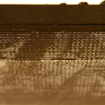 Below on the left, you’ll find the supports by the BEE. We quickly stopped the post-processing treatment as they were too complicated to remove compared to other printers. These supports can be removed, but will require more time and energy than with other machines. The middle photo highlights the raft that was generated by the BEETHEFIRST: flexible to see elastic, very effective and easy to remove. In the photo on the right, you can see a comparison of the infill (the filling in the piece) between the classic honeycomb of the MakerBot at 15% (picture on the left) and that of the BEETHEFIRST with the density set at medium.