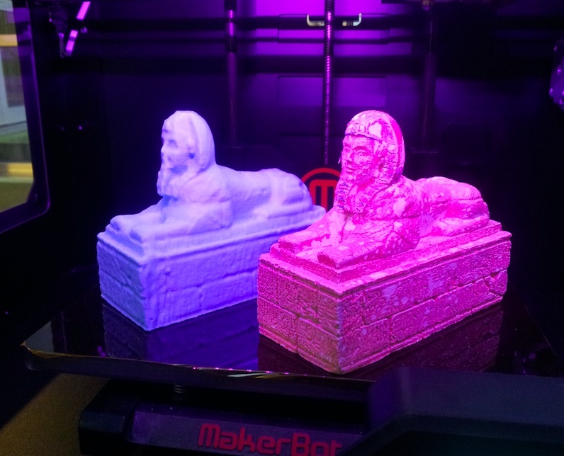 Thanks to this option, it was possible to generate several models that we could merge together over time. After 3 scans of our Sphinx, the space between the legs and the sharp angles were all perfectly digitize, which was not the case after just one single scan. If you want to digitize more than 5 times with one object, we would advise against it, as it will give you worse results than ones that show improvement. This is because the state of the surface will depreciate. Once your file is created, you can then save the 3D model in a .thing format for MakerBot or in STL format.