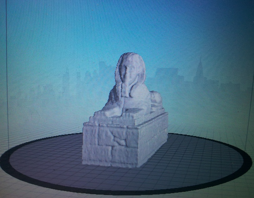 Thanks to this option, it was possible to generate several models that we could merge together over time. After 3 scans of our Sphinx, the space between the legs and the sharp angles were all perfectly digitize, which was not the case after just one single scan. If you want to digitize more than 5 times with one object, we would advise against it, as it will give you worse results than ones that show improvement. This is because the state of the surface will depreciate. Once your file is created, you can then save the 3D model in a .thing format for MakerBot or in STL format.