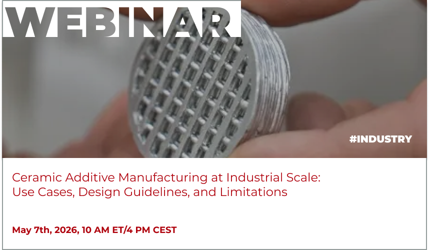WEBINAR: Ceramic Additive Manufacturing at Industrial Scale: Use Cases, Design Guidelines, and Limitations