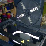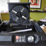 In the photos above you can see from left to right, the coil of the Replicator 2, followed by that of the Replicator 5G and a reel of filament that was bought on the web (blue filament). Finally, it is time to remove the printer from its packaging . It is here were we see the reason for their modification with the filament. The coil is now no longer attached to the rear of the machine because it is now an integral part of it. Now you can’t just speak about the ‘proprietary’ coil because it is possible to use the ‘traditional’ coils by placing them on a coil stand. We must note that this could change the deal, especially for those who manufacture the coil. It would be a good idea for builders to come together to create a standard format, but that’s another story.