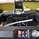 One of the other debatable points with the Replicator 2 was that its acrylic construction tray, which tends to deform fairly easily (when it wasn’t already deformed). It seems that MakerBot heard the comments and we now find a glass construction tray with dimensions that are somewhat different at 26.5 cm in width (X) and 20.5 cm in depth (Y) in contrast to the Rep 2, which had a width of 30 cm (X) and a depth of 15 cm (Y). When looking at all the papers that were sent with the printer, we find the ‘blue tape’ that you use to help facilitate the adhesion of the PLA. As far as we are concerned, we like our brown tape from TESA (model 4309), which has already proved its worth.
