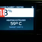 The control panel has been completely redesigned and leaves room for a color screen that is controlled by a large button on the ‘Jog Dial’ (a simplified button that turns from left to right) followed by two small pushbuttons. Aesthetically speaking, it blends into the printer well and is much more user friendly than that of the Replicator 2 (it is now more difficult to press the wrong button for those of you who have big fingers). The menu has 6 possibilities to control the printer “manually”.