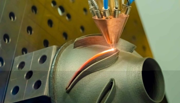La tecnología DED puede aplicar polvo metálico o alambre solo en las partes que lo necesiten.