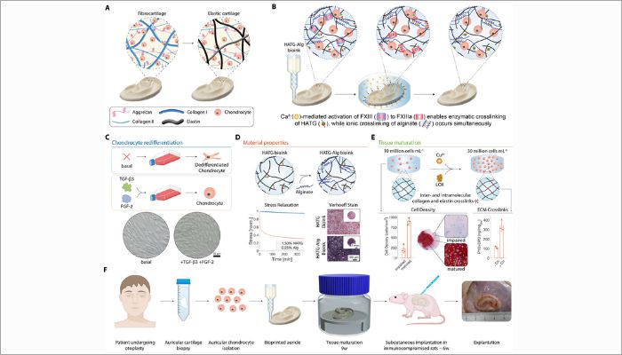 Resumen gráfico del proceso de fabricación de cartílago de oreja (créditos: P.Fisch, S.Kessler, S.Ponta, et al.).