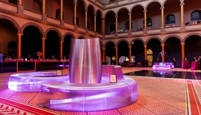 Paneles y lámpara impresos en 3D con motivo del Disney Accelerator Demo Day.