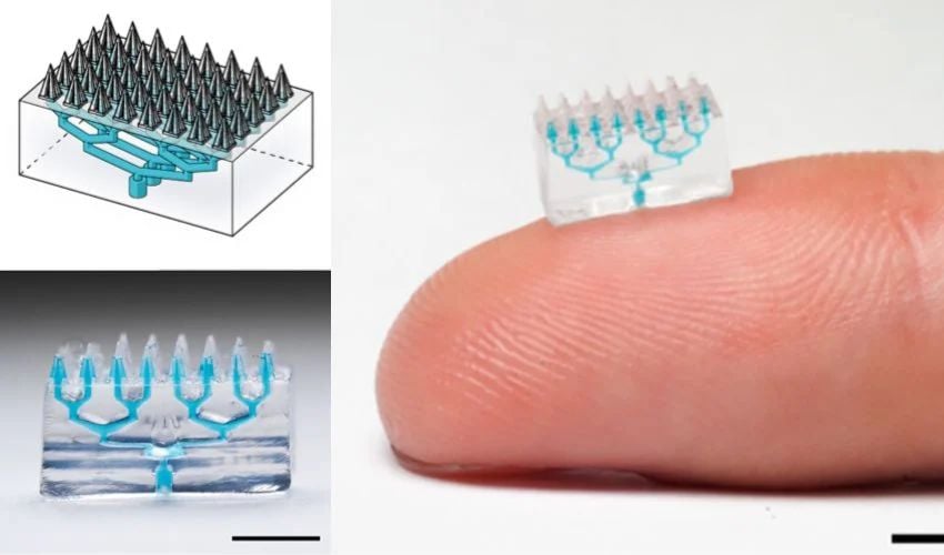El primer objetivo de PinPrint son los parches de microagujas, que ofrecen una alternativa sin dolor a las agujas convencionales. Se pueden utilizar para la administración de vacunas y fármacos tanto para casos de uso terapéutico como cosmético, así como para la recogida de muestras de líquido intersticial. En comparación con las agujas, los parches de microagujas son fáciles de aplicar, menos peligrosos y mínimamente invasivos. Esto significa que pueden administrarse fácilmente en hogares y en entornos clínicos y no clínicos. Además, estos parches tienen menos probabilidad de infecciones y son más fáciles de desechar que las agujas normales. Estos dispositivos existen desde hace décadas y son fáciles de fabricar utilizando métodos tradicionales. Sin embargo, PinPrint está aprovechando la fabricación aditiva para lograr geometrías altamente complejas, lo que permite la creación de microagujas con canales microfluídicos y espacios negativos que serían imposibles de incorporar a través de la fabricación convencional.