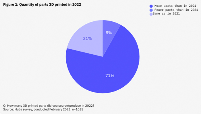 El 71% de los participantes afirmó haber impreso en 3D más piezas en 2022 que el año anterior.