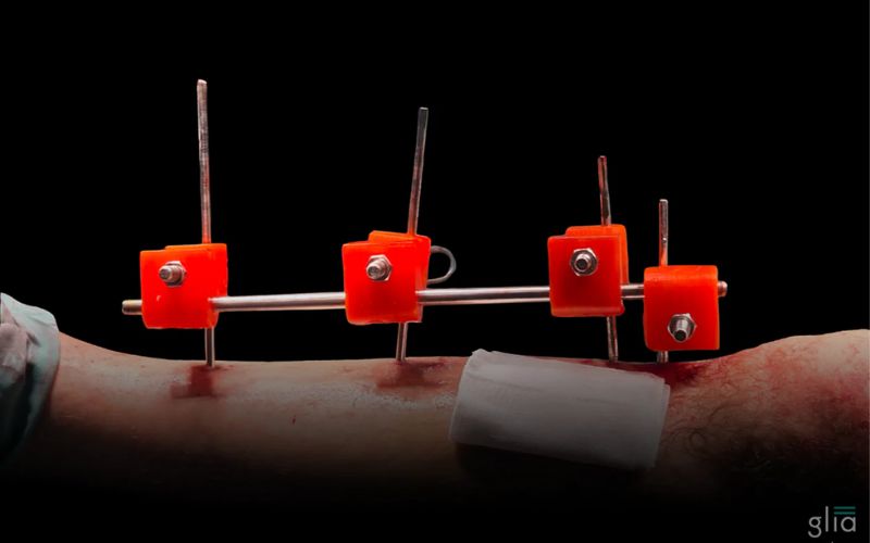 Chiamato in inglese anche “xfix”, un fissatore esterno serve per allineare le ossa fratturate ed è utile in campo medico perché è regolabile a seconda del tipo di frattura. In condizioni normali, un fissatore esterno viene scelto quando la frattura è troppo instabile per essere trattata con tecniche interne o quando i tessuti sono troppo danneggiati per un’operazione immediata. Risulta quindi un valido alleato in situazioni critiche, soprattutto perché permette ai chirurghi di “mettere in pausa” la condizione medica: stabilizza, protegge e dà al corpo del paziente il tempo necessario per ridurre l’infezione o lo shock traumatico.