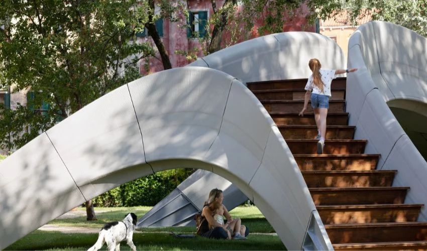 Il primo ponte Striatus a Venezia è un altro progetto che ha stabilito nuovi standard per la stampa 3D in calcestruzzo. I principi progettuali che vi convergono mostrano questa tecnologia nella sua espressione migliore. La particolarità del progetto risiedeva soprattutto nella collaborazione con tutti i partner coinvolti, in particolare Zaha Hadid Architects e il Block Research Group. Di recente abbiamo potuto approfondire questa collaborazione con una seconda iterazione: il ponte Phoenix.