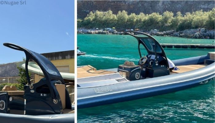 Paravento superleggero stampato in 3D, progettato per proteggere il pilota dal vento senza appesantire la struttura dell’imbarcazione.