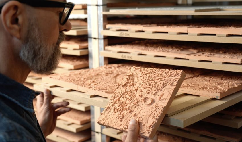 Il MAXXI di Roma espone fino al 26 aprile un plastico della città, composto da 953 piastrelle in terracotta che coprono 48 metri quadrati e riproducono l’intera area comunale. Grazie alla stampa 3D, l’opera è stata completata in tempi record e con un livello di dettaglio elevatissimo.