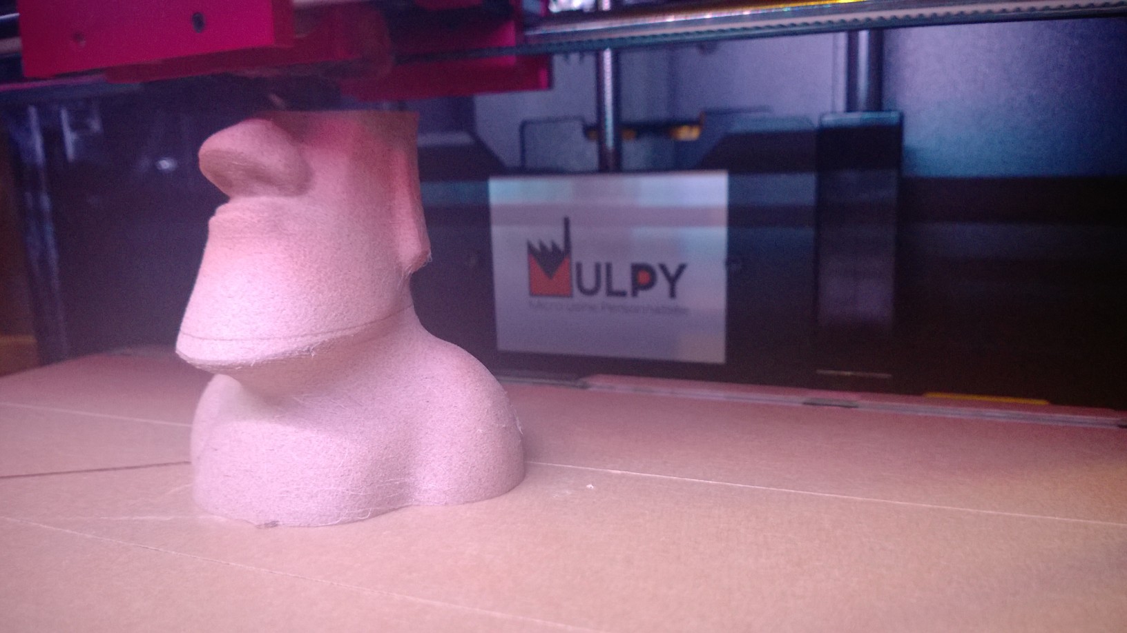 Pour ceux et celles d’entre vous qui ont la possibilité de modifier la température en cours d’impression, vous pourrez obtenir des effets assez sympa mais toutes les imprimantes ne le permettent malheureusement pas. Sur notre Replicator 2 nous avons modifié le firmware de l’imprimante en le remplaçant par le firmware Jetty, créé par la communauté sur Google, ce qui nous à permis de le tester. Pour les plus techniques d’entre vous, sachez qu’il est également possible de modifier le GCode de l’objet afin de faire varier la température automatiquement à des endroits bien précis !