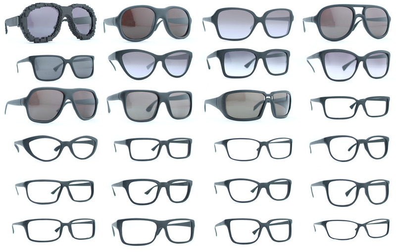 Les montures sont imprimées à partir d’un matériau composite résistant, extrêmement flexible et anti-choc, et sont garanties pendant une période de 12 mois. Pour le moment, la seule couleur disponible est le noir. Les contributions sur la page Crowdhoster de Protos débutent à 1$ (en échange Protos s’engage à réaliser une pompe pour chaque dollars reçu…) et pour 199$ vous pourrez être un des early-adopters d’une paire de lunettes imprimée en 3D (livraison prévue pour Décembre 2013). Un avant-goût des modèles proposés :