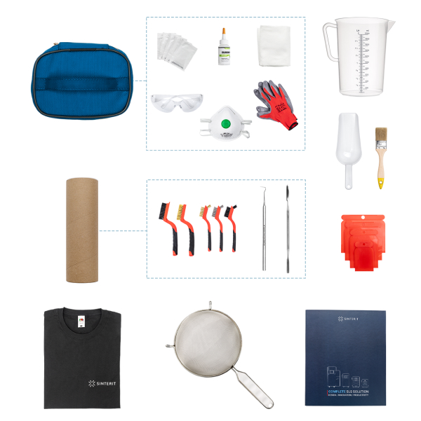 L’entonnoir fait sans doute partie des outils les plus importants de ce kit : facilement fixable sur le récipient de poudre de 6 kilos, il permet de remplir l’imprimante sans que la poudre ne s’échappe ou que des particules s’envolent. Le but est de garder le processus d’impression le plus propre possible mais aussi d’éviter tout gaspillage et de préparer rapidement la machine. Janus Wroblewski, directeur de ventes chez Sinterit, ajoute : « Si vous utilisez beaucoup la Sinterit Lisa PRO, vous découvrirez rapidement combien de temps vous pouvez gagner en utilisant simplement quelques nouveaux outils à poudre que nous fournissons. »