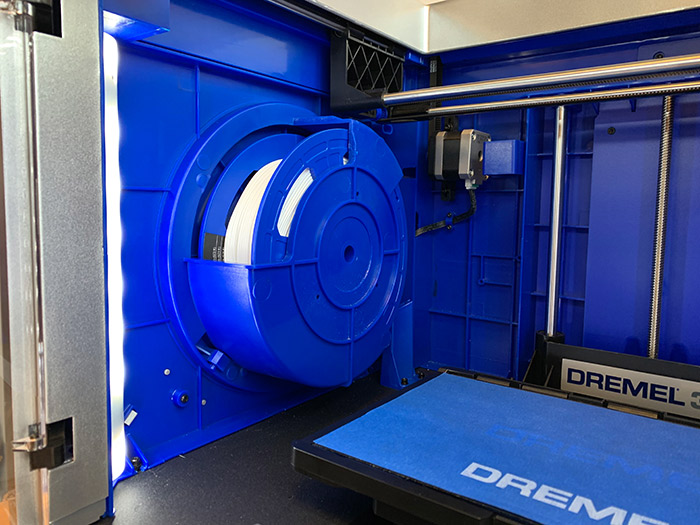 À noter que l’imprimante 3D 3D40 n’accepte officiellement que des bobines au format spécifique de la marque Dremel. Une limite technique qui pourra être toutefois contournée en ajoutant un dévidoir externe, et qui permettra d’utiliser n’importe quel filament PLA (ou compatible plateau froid) au diamètre 1,75mm.