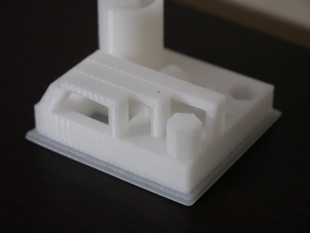 En regardant de plus près, nous pouvons distinguer un léger « stringing » (légères « bavures » qui se règlent en ajustant les paramètres de rétractation et/ou de température).