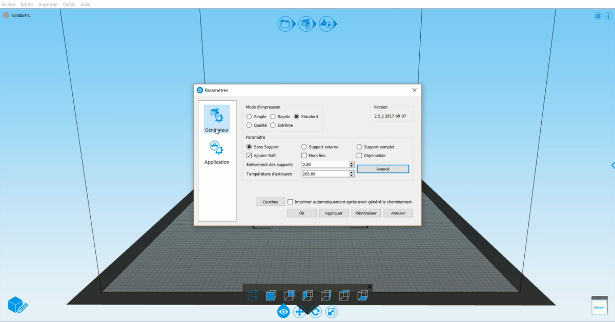 Nous avons commencé par imprimer les fichiers présents sur la clé USB fournie, sans recourir au logiciel. Notez que ceux-ci sont tous paramétrés pour utiliser la fonction « raft », probablement pour assurer une adhésion suffisante sur le plateau d’impression. Dans un deuxième temps, nous sommes passés à l’impression de quelques objets téléchargés sur Internet et préparés depuis le logiciel 3DStar.