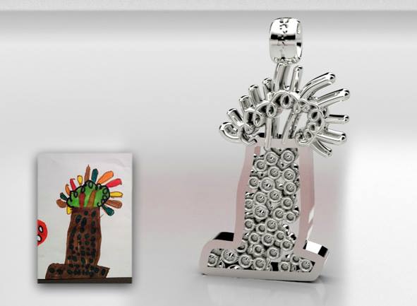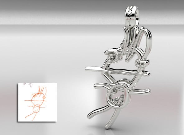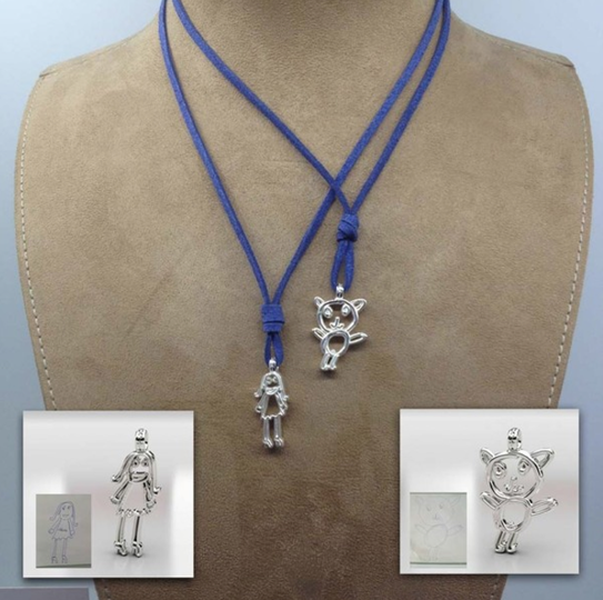 UCKi est une société basée aux Pays-Bas qui propose de transformer en bijoux, en pendentifs ou même en oeuvres d’art les dessins réalisés par vos enfants, non pas en plastique… mais bel et bien en or ou en argent !