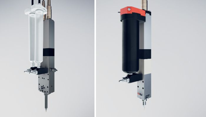 vipro-HEAD pour matériaux à 2 composants (à gauche) et vipro-HEAD version haute température jusqu’à 110 °C (à droite)